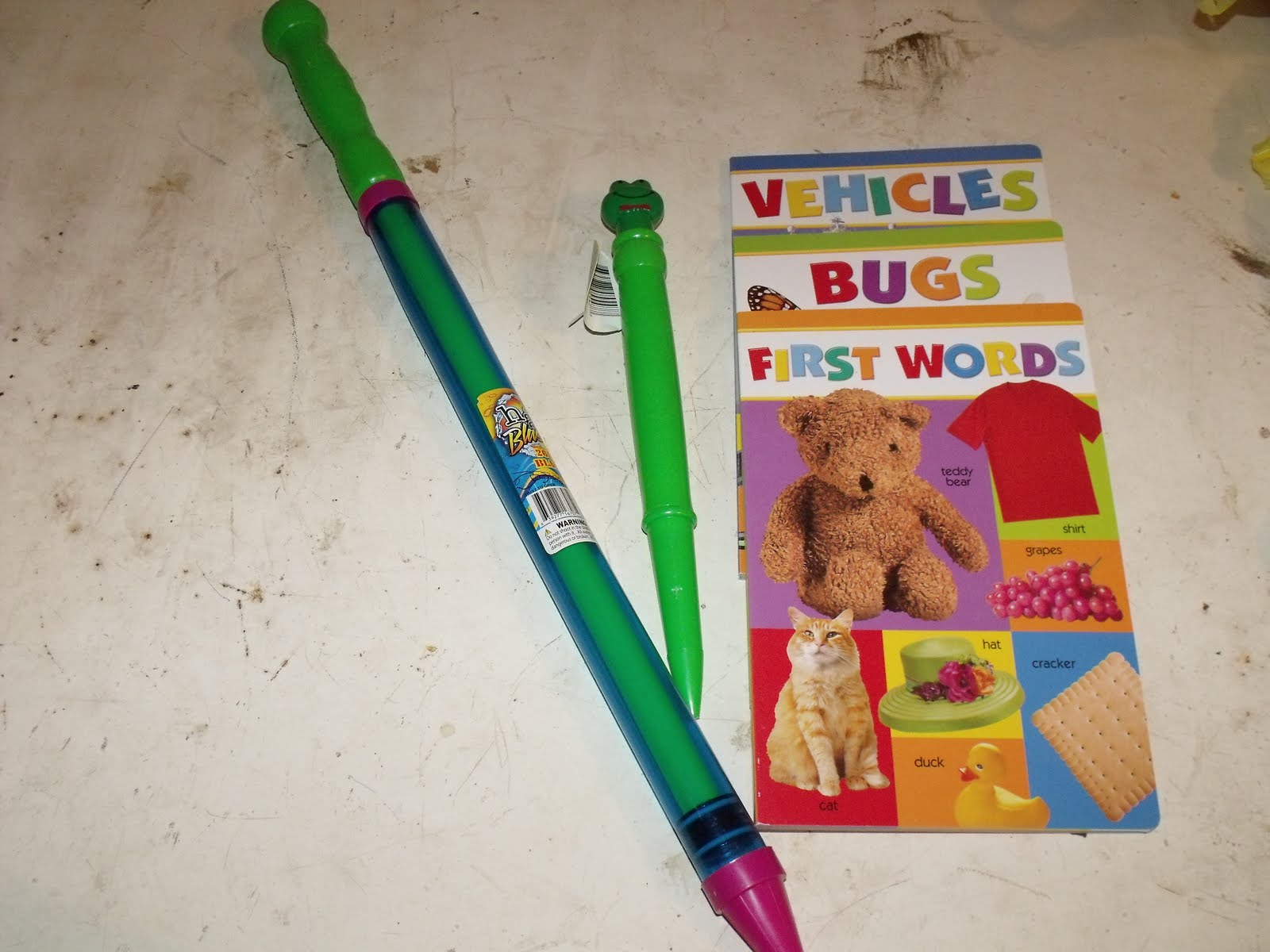 two reading pointers (the long one is extendable to almost twice this length for reading words on the walls!), and three board books for book baskets.